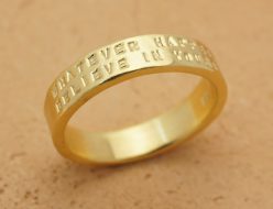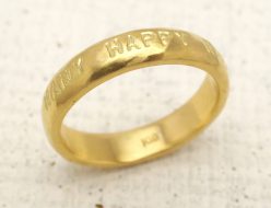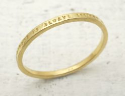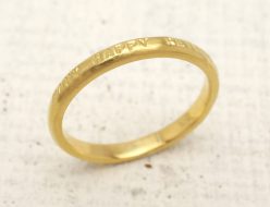 あなたの言葉が刻印できるシンプルで細めのK18ゴールド製メッセージリング(1行タイプ)