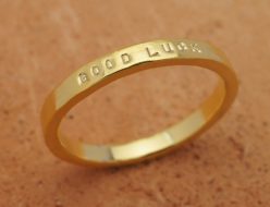 あなたの言葉が刻印できるシンプルで華奢なK18ゴールド製メッセージリング(1行タイプ) -