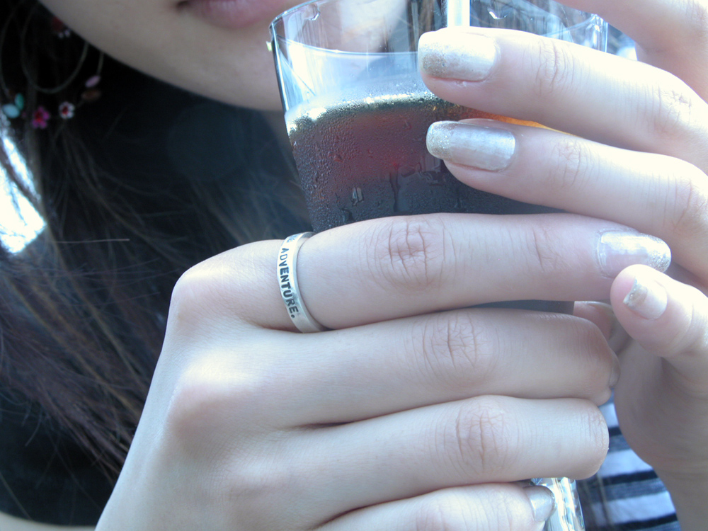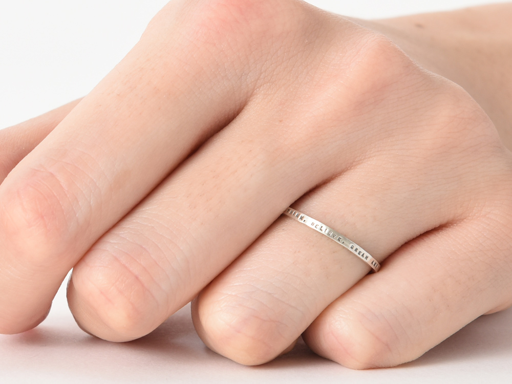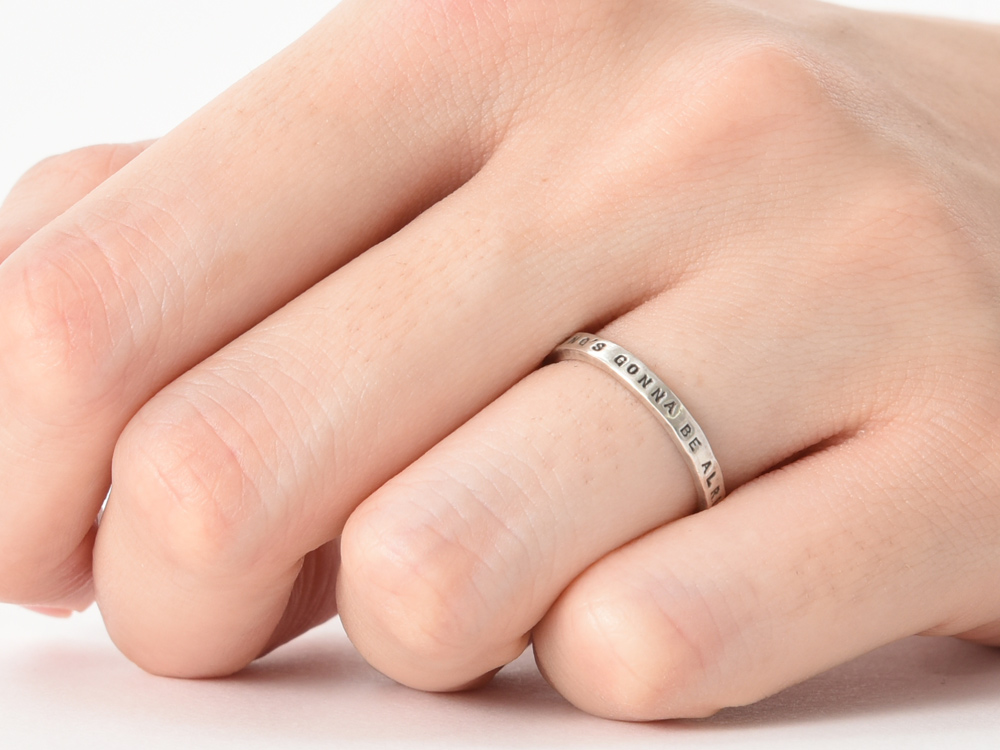 刻印小の着用例です。メッセージリング(シルバー・1行タイプ・刻印小)